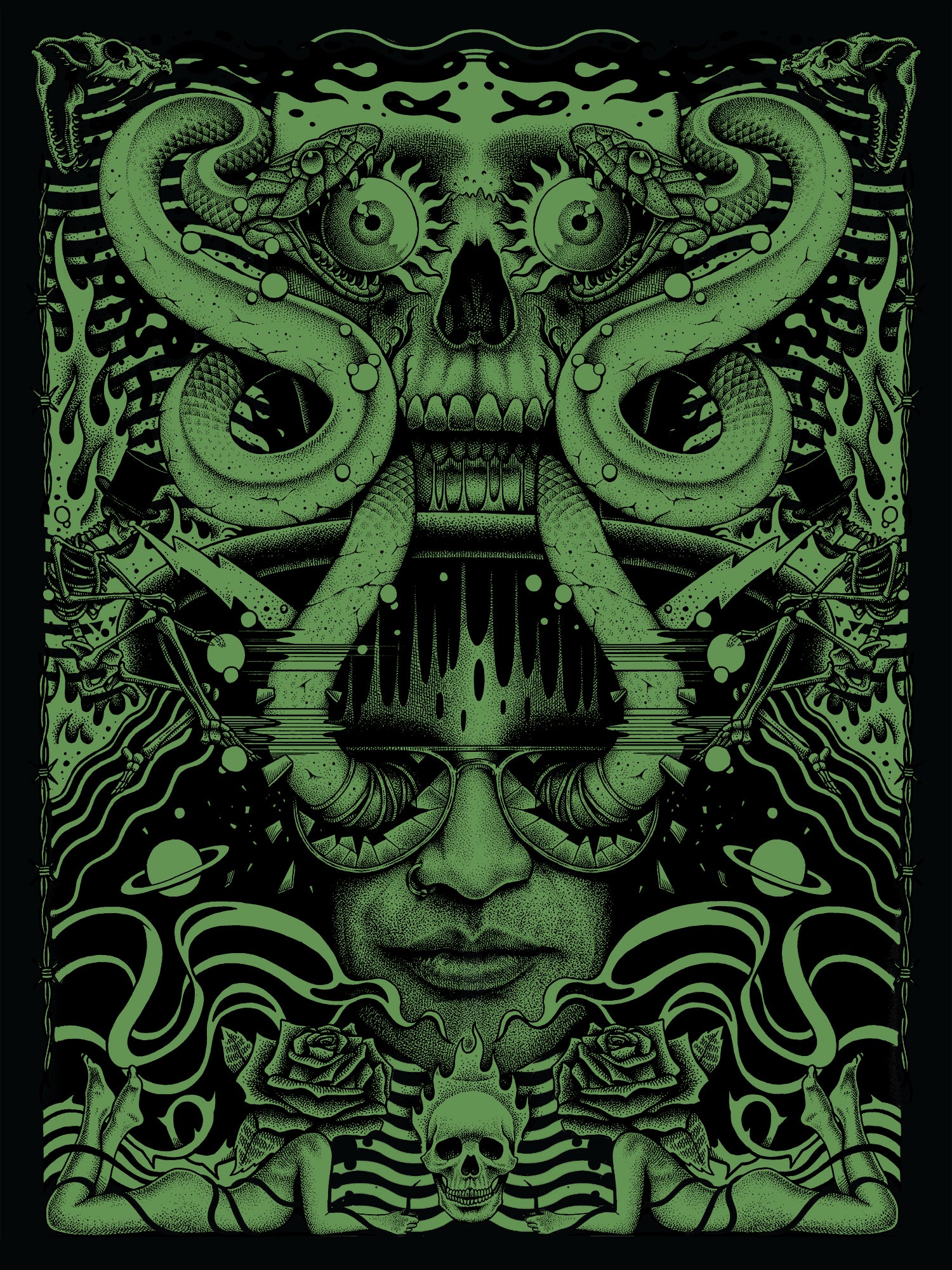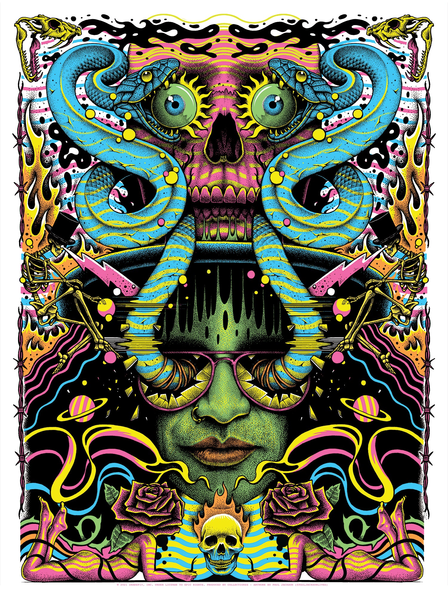 This is an official Glow In The Dark screenprint for the one and only - SLASH.